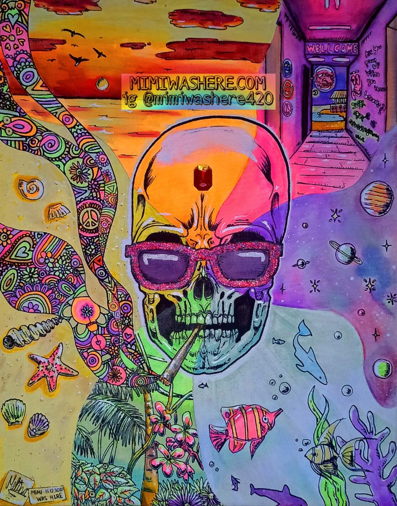 Fluorescent markers, fashion jewelry and glitter on Canvas + Certificate of authenticity