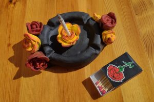 Art made with cold clay by me <3 Ashtray with roses + Box of matches 🥀 This ashtray is SOLD – but comissions are open You can ask me for something like this or other cold clay ideas ❤️
