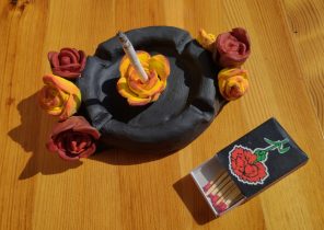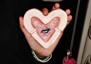 Heart-shaped ashtray + eye with lashes Mimi was here